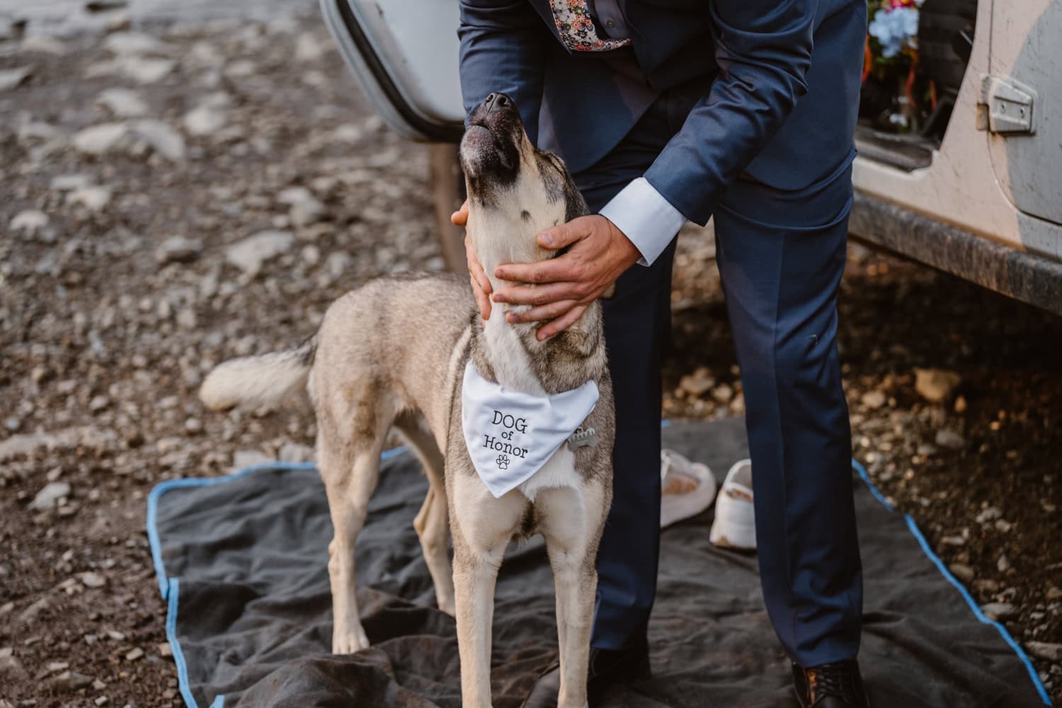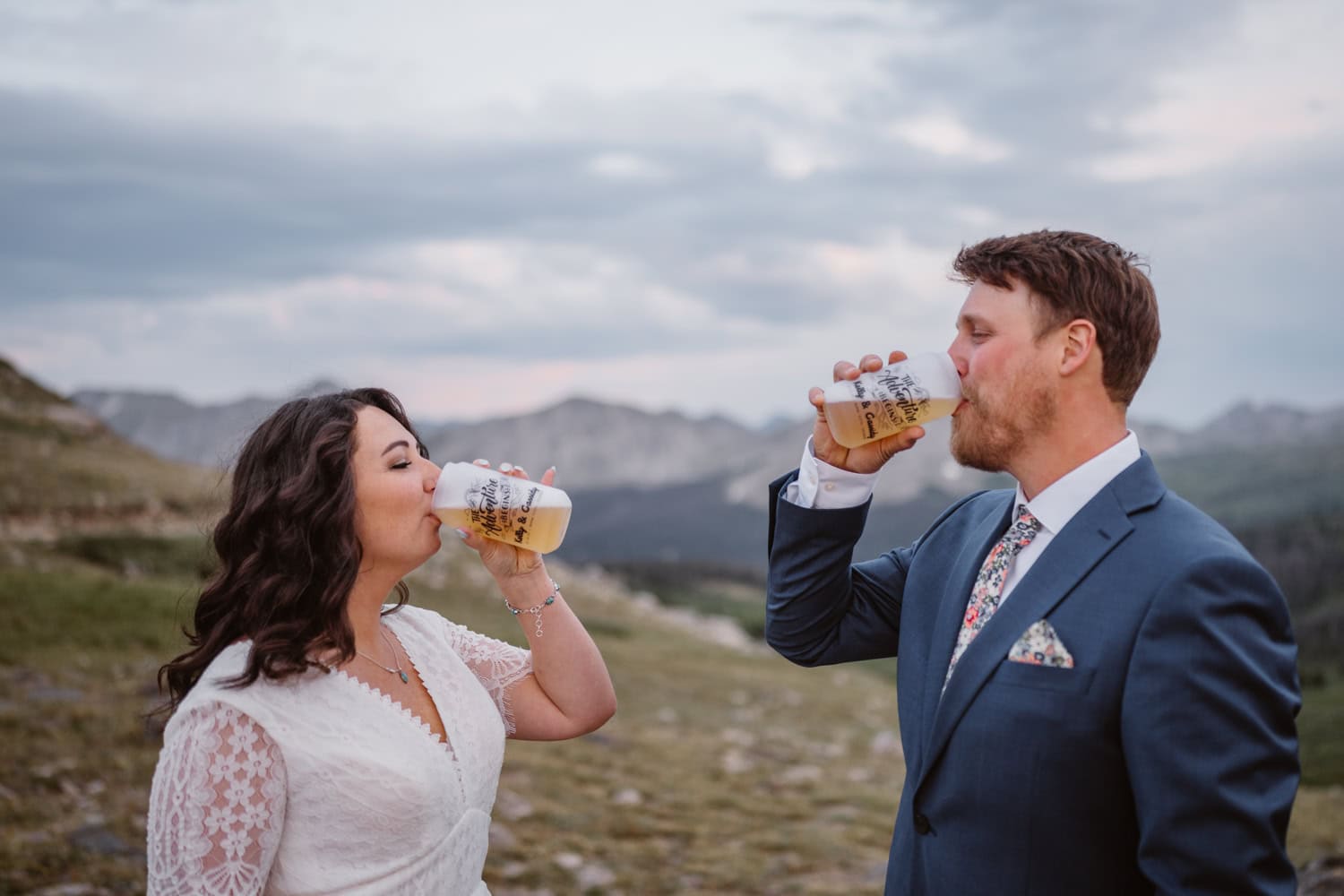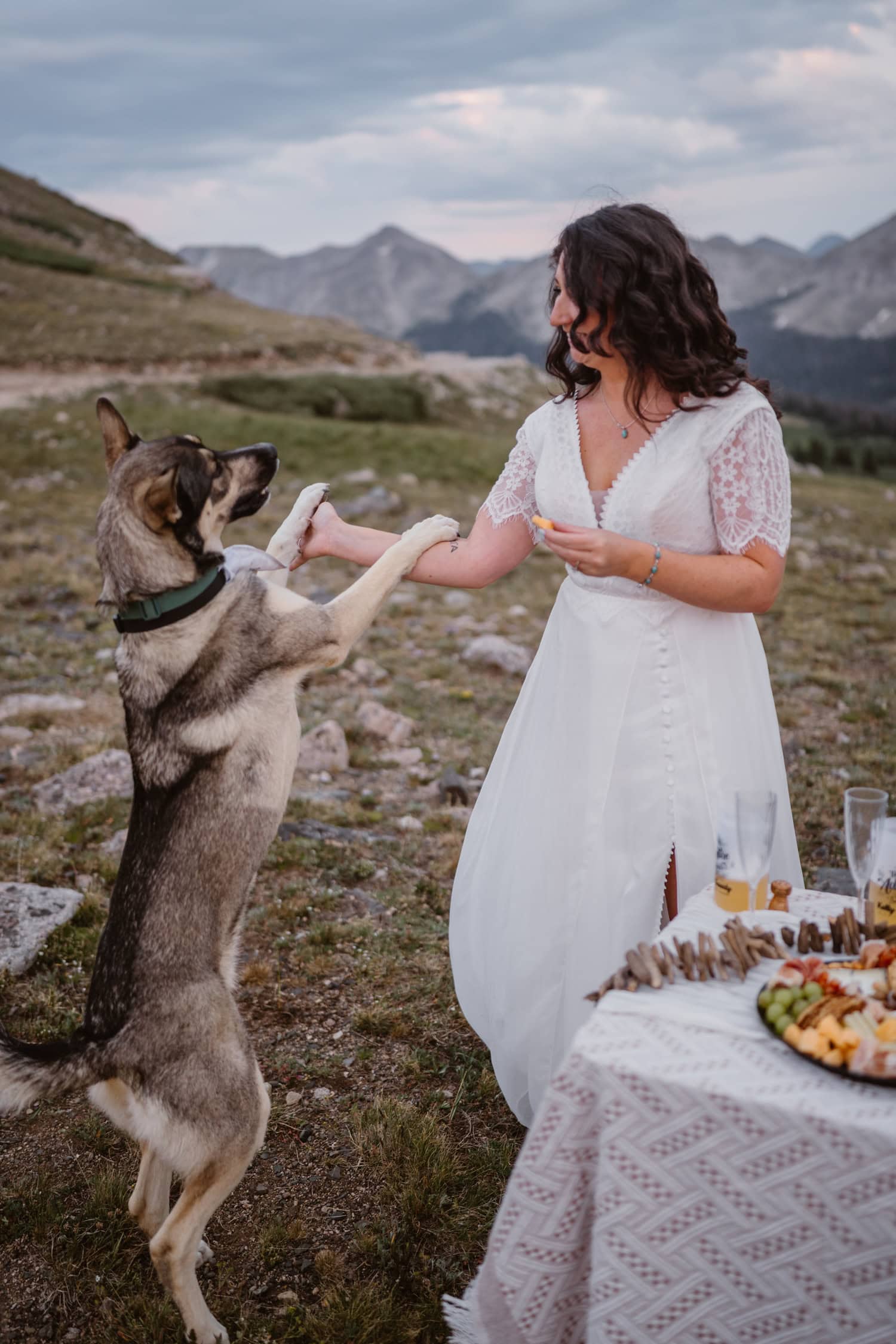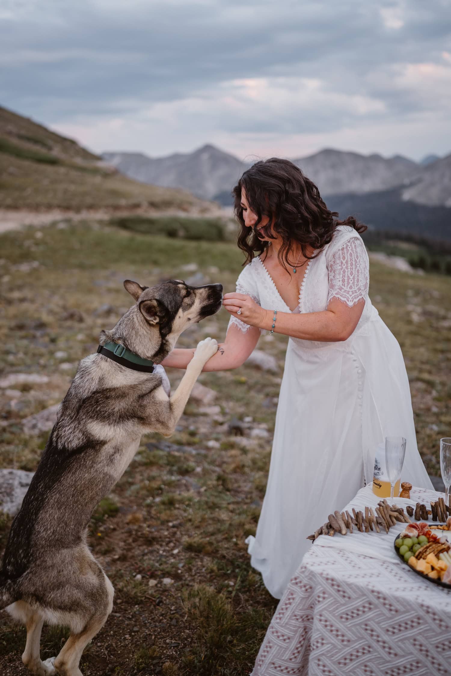 We pulled over near a massive field of wildflowers where they exchanged vows with their dog by their side—simple, personal, and deeply meaningful. Higher up the pass, they shared a picnic and wandered through sunset light for couples photos before heading back down the mountain.